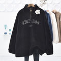 Velvet Padded Loose Mid-length Half Zipped Stand Collar Sweater